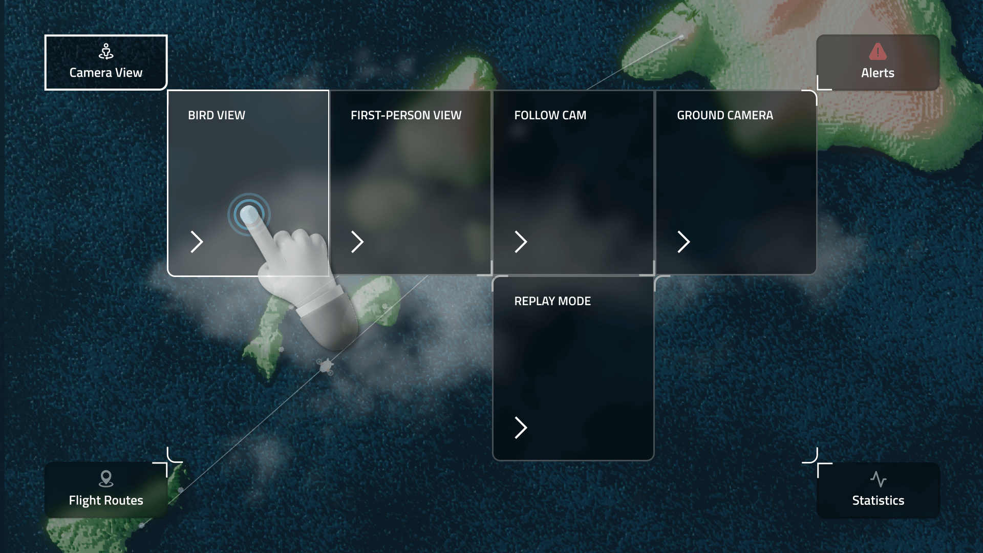 Flexible camera views, allowing users to switch between top-down strategic views, third-person perspectives and immersive FPV mode for a drone pilot experience.